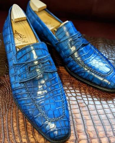New Blue Men Loafers Breathable Slipon Crocodile Pattern Casual Shoes