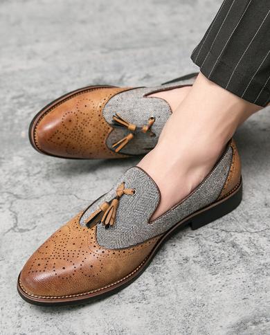 Semiformal Leather Shoes For Men Tassel Casual Brogue Flats Carved