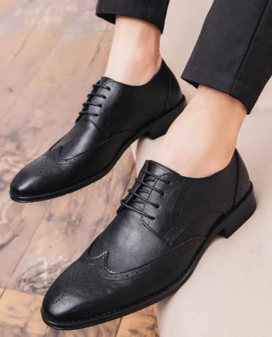 Men Dress Shoes Autumn New Brogue Men Leather Shoes Vintage