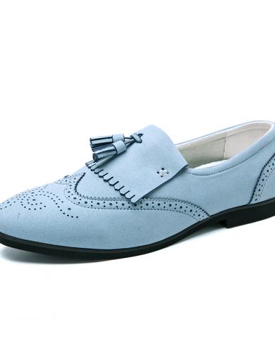Men Leather Tassel Loafers Pointed Toe British Style Vintage Carving