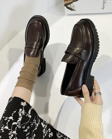 Platform Leather Shoes Women Chunky Thick Sole Round Toe Black