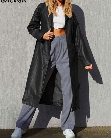 Gacvga 2022 Autumn Winter Womens Slim Pu Leather Long Coat