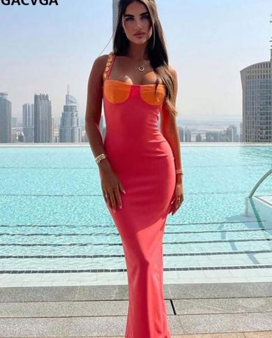 Gacvga Knitted Maxi Party Dress Women 2022 Summer
