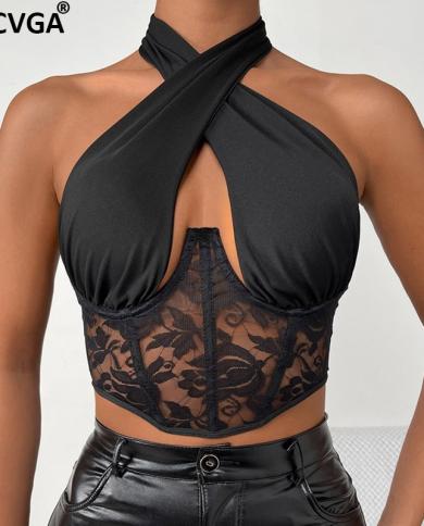 Gacvga Mesh Corset Crop Top Women Sleeveless Slim Tank