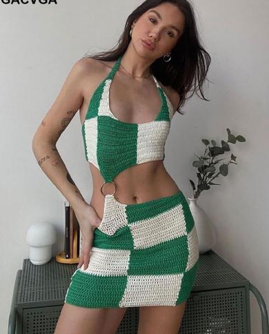 Gacvga 2022 Summer Knitted Tracksuit 2two Piece Set Women Tank