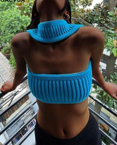 Gacvga 2022 Summer Sweater Knitted Cut Out Crop Top