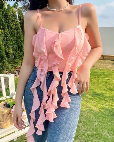 Gacvga 2022 Summer Ruffled Suspender Crop Top Women Camisole
