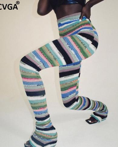 Gacvga Knit Mesh Women Tops And Pencil Pants Autumn
