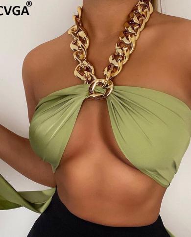 Gacvga Chic Metal Chain Halter Crop Tops For Women