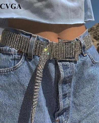 Gacvga Silver Shiny Diamond Belts Cummerbunds Party Club Slim