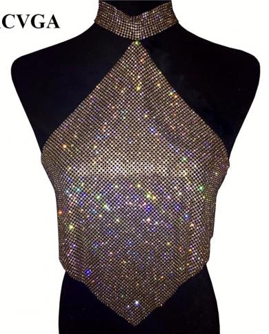 Gacvga Shinning Crystal Diamond Crop Top Summer Beach Backless