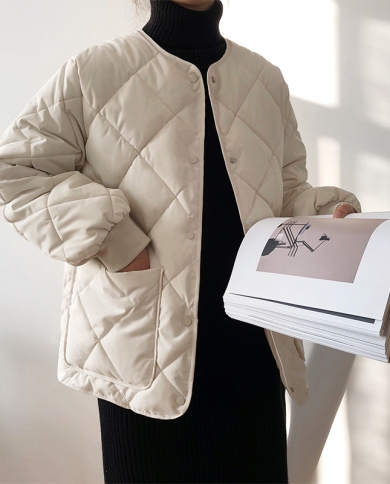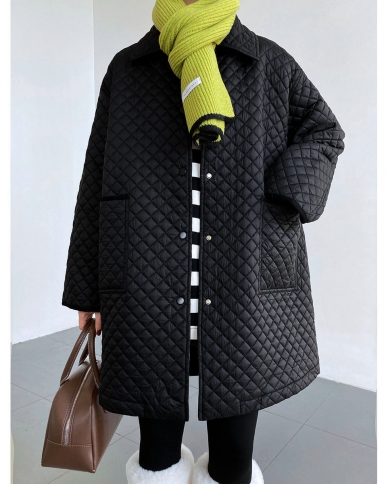 Small Rhombic Cotton Coat Womens Mid-length Loose Lazy Wind