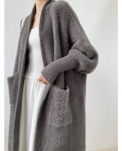 Lazy Wind Imitation Mink Velvet Mid-length Sweater Coat Womens Autumn