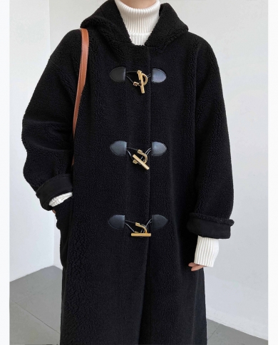 Design Sense Horn Button Coat Womens Autumn And Winter Thickened