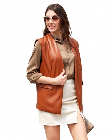 Sleeveless Pu Leather Vest Loose Large Size Womens Vest Cardigan