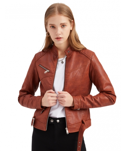 New Jacket Womens Short Belt Womens Leather Coat Large Size