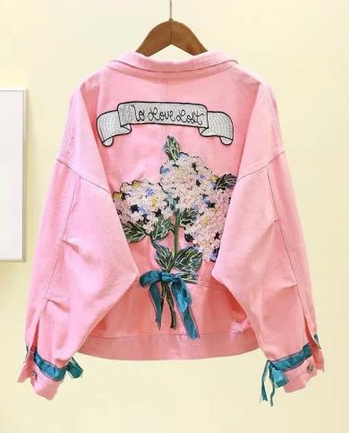 New Autumn Womens Denim Jacket Coat Candy Color Embroidery