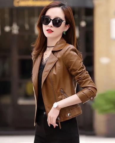 2022 New Spring Women Faux Leather Jacket Coat Turndown Collar