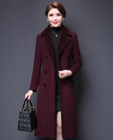 Women Coat Winter Long Overcoat Woolen Coat Loose Doublebreasted Plus