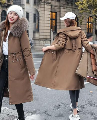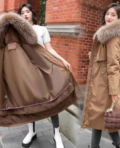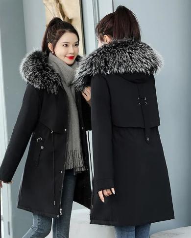 2022 New Warm Fur Lining Long Parka Winter Jacket Womens