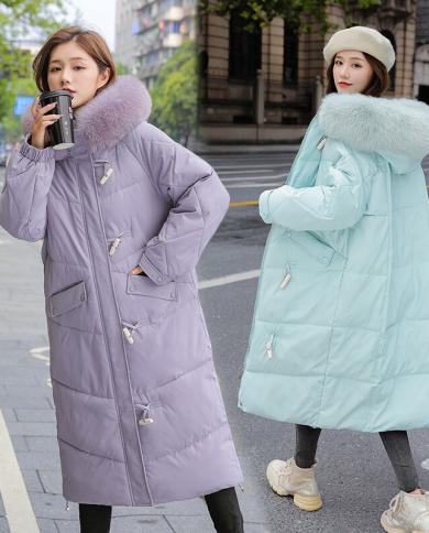 2022 New Womens Parkas Winter Jacket Fur Collar Hooded Long
