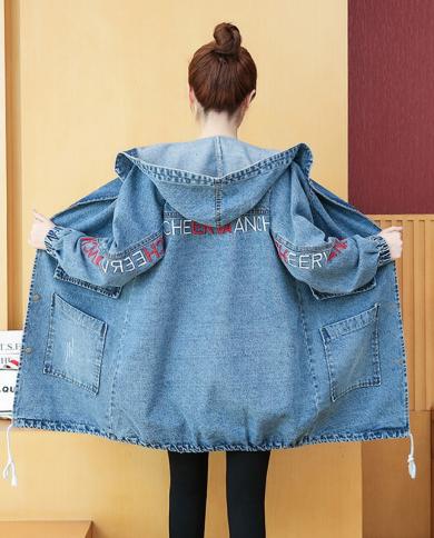 Spring Autumn Denim Jackets Women Loose Hooded Overcoat Vintage