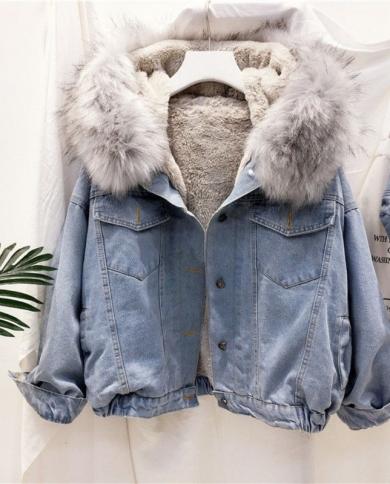 New Winter Jacket Women Velvet Thick Denim Jacket Big