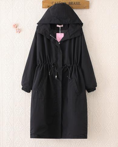 Women Long Trench Coat Autumn New Black Windbreaker Hooded