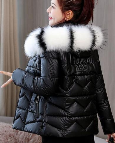 2022 New Women Winter Jacket Parka Bread Glossy Basic Coat