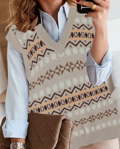 Women Knitted Sweater Vest Autumn Fashion Oversized Pullovers Sleeveless Sweater