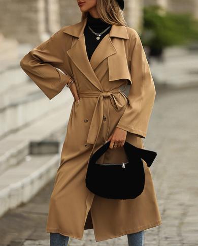 Women Trench Coat Spring Autumn Thin Coats Solid Color Lapel