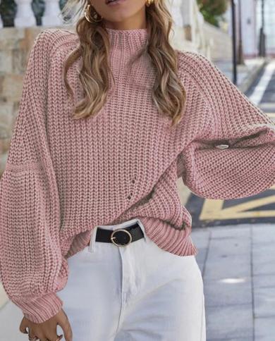 Turtleneck Sweaters For Women Autumn Winter Long Sleeve Knit Pullover