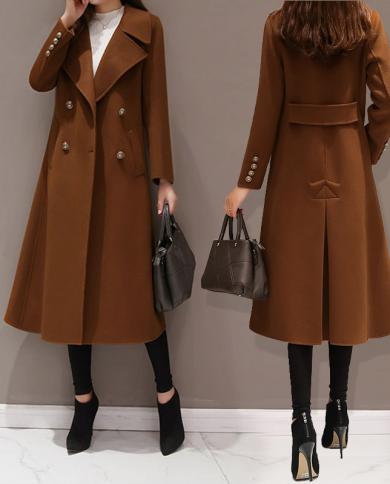 2022 New Winter Women Woolen Coat Fashion Casual Doublebreasted Long