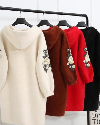 Autumn Winter Women Cardigan Knit Sweater Embroidery Beading Long