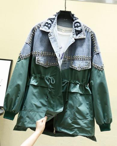 2022 Autumn New Denim Jacket Women Coat Contrast Splice Rivet