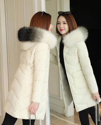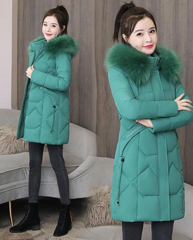 2022 New Winter Jacket Women Coat Fur Collar Hooded Thick