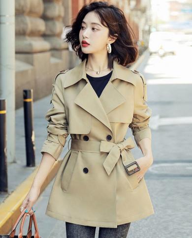2022 New Autumn Women Trench Coat Turn Down Collar Double