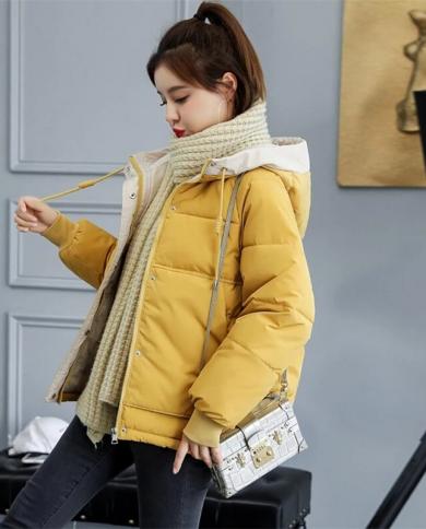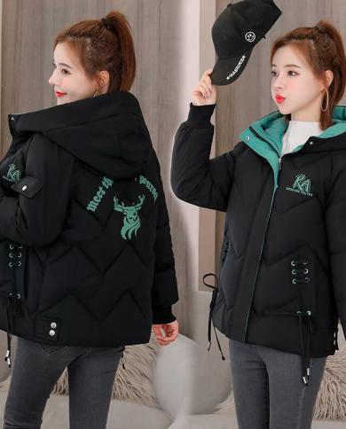2022 New Women Winter Jacket Hooded Down Cotton Jacket Short
