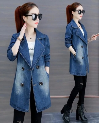 2022 New Autumn Womens Denim Jacket Long Sleeve Overcoat Vintage