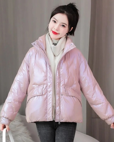 Women Winter Jacket Parkas 2022 New Fashion Glossy Thick Stand