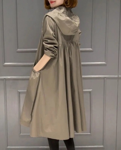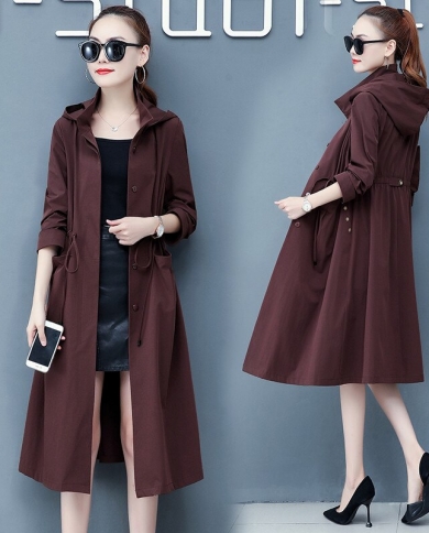 2022 New Womens Long Trench Coat Spring Autumn Casual Hooded