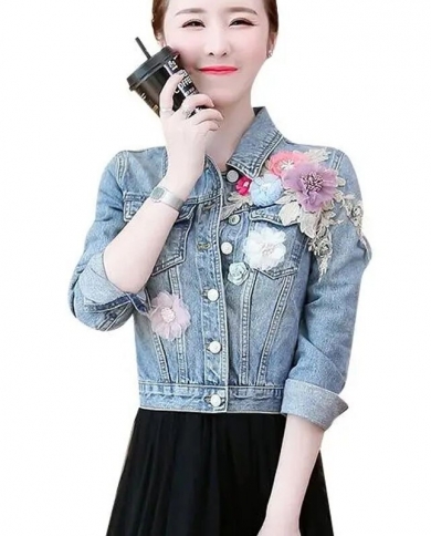 2022 New Autumn Women’s Denim Jacket Splicing Flower Jeans Jacket