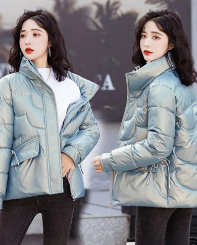 2022 New Winter Jacket Parkas Women Short Coat Female Glossy