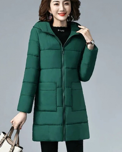 2022 Fashion Parkas Winter Jacket Women Cotton Padded Parka Solid
