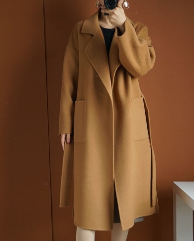 High Quality Double Faced Cashmere Coat Women Autumn Winter Loose
