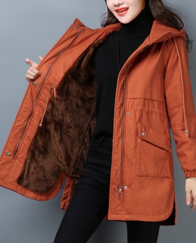 2022 New Womens Parkas Long Hooded Slim Zipper Pockets Ladies