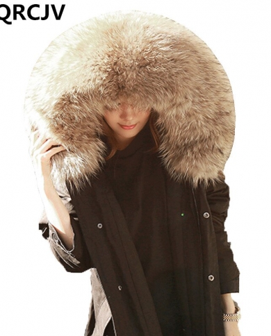 Winter Jacket Women Fashion Big Fur Collar Long Female