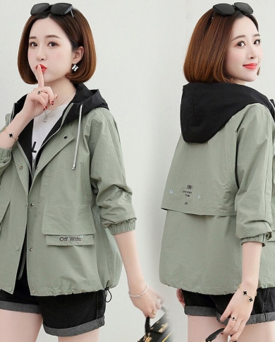 2022 New Autumn Womens Jackets Casual Hooded Windbreaker Female Long