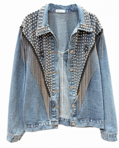 2022 Autumn New Denim Jacket Streetwear Womens Coat Heavy Tassel