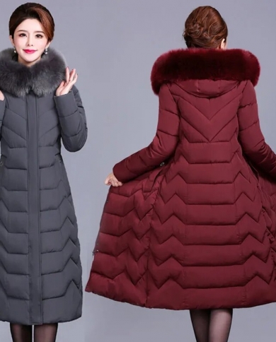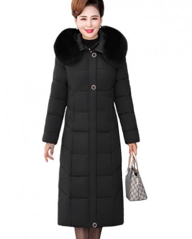 2022 Winter Womens Jacket Middle Aged Long Cotton Thicken Hooded